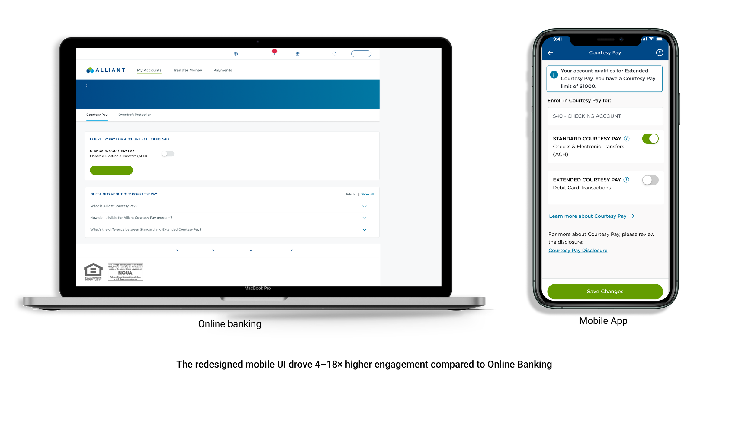 Overdraft Protection and Courtesy Pay allow members to complete transactions even when account balances are insufficient, preventing declined payments and embarrassment. While these features existed in Online Banking, they were not available on mobile which created friction for mobile-first members and limiting overall adoption.